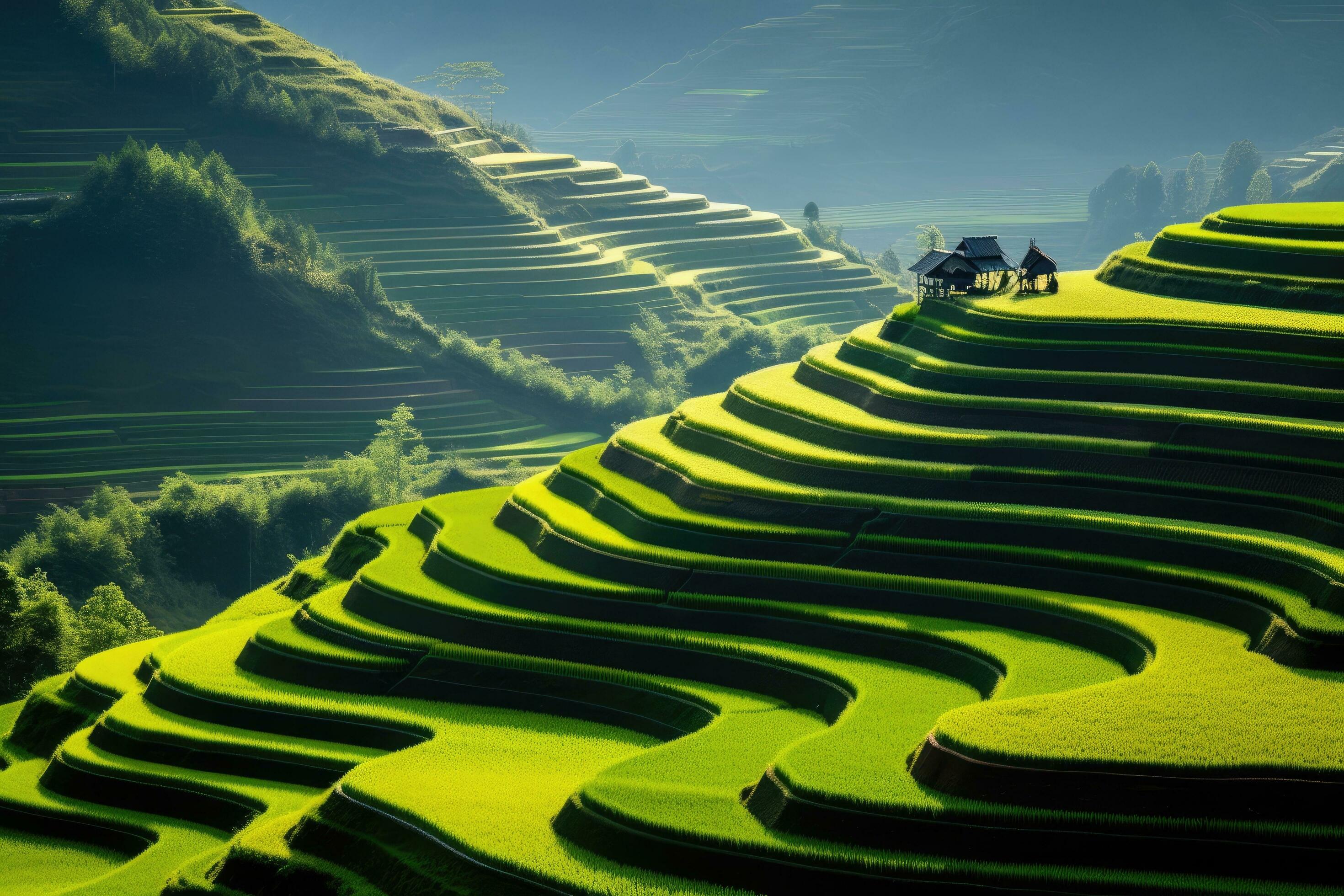 AI generated Rice fields on terraced of Mu Cang Chai Vietnam Terraced