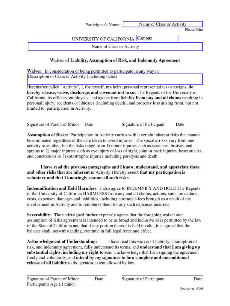 Field Trip Liability Waiver Template prntbl concejomunicipaldechinu