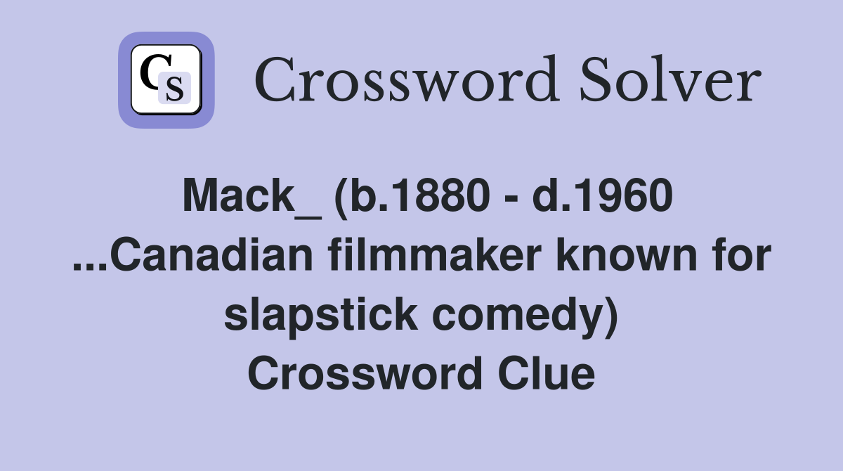 Mack (b 1880 d 1960 Canadian filmmaker known for slapstick comedy