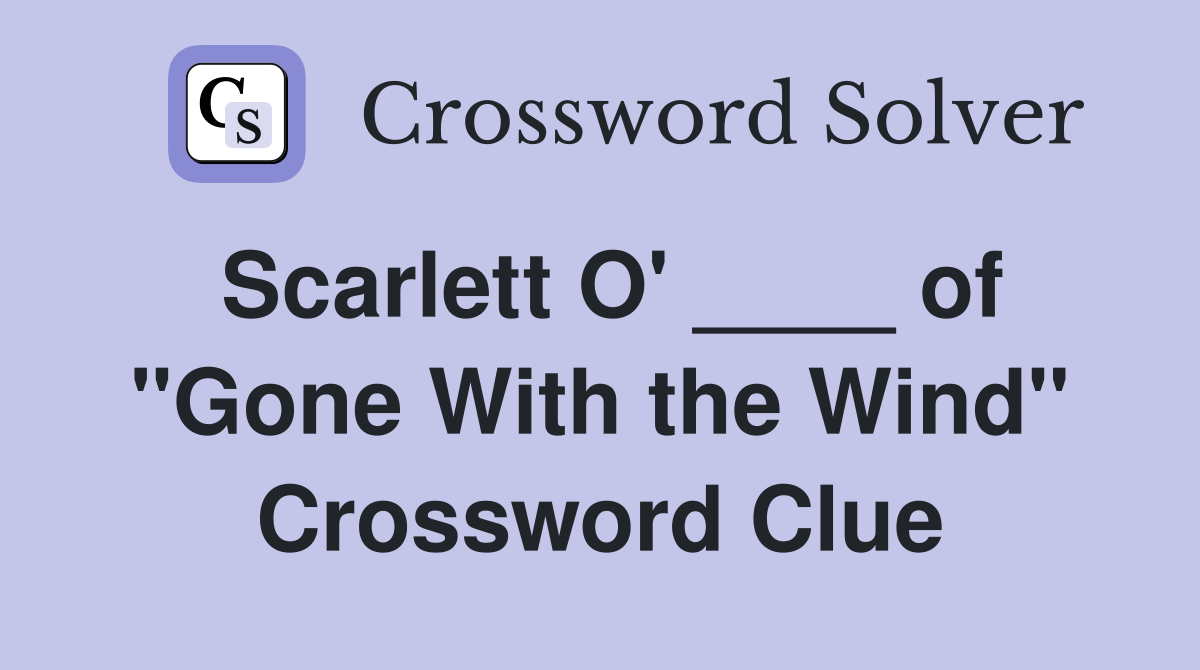 Scarlett O #39 of quot Gone With the Wind quot Crossword Clue Answers