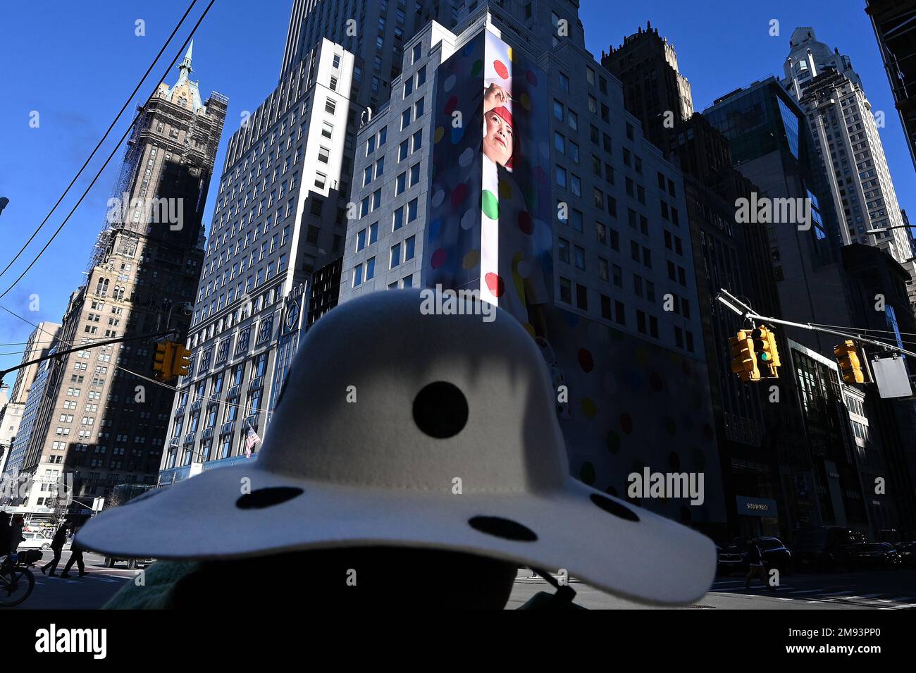 A portrait of Japanese artist Yayoi Kusama is set along the south