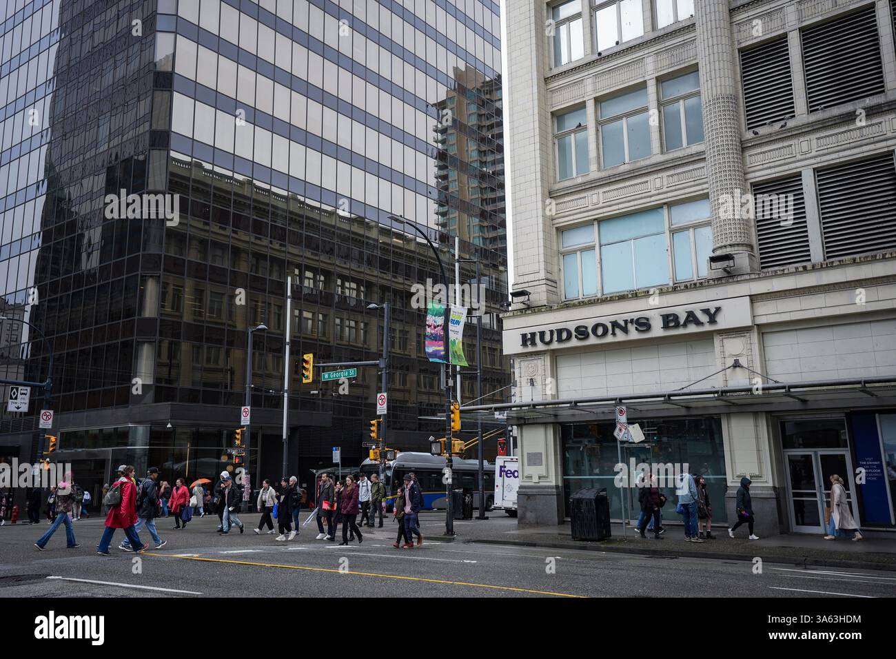 People walk past the flagship downtown Hudson #39 s Bay store in Vancouver