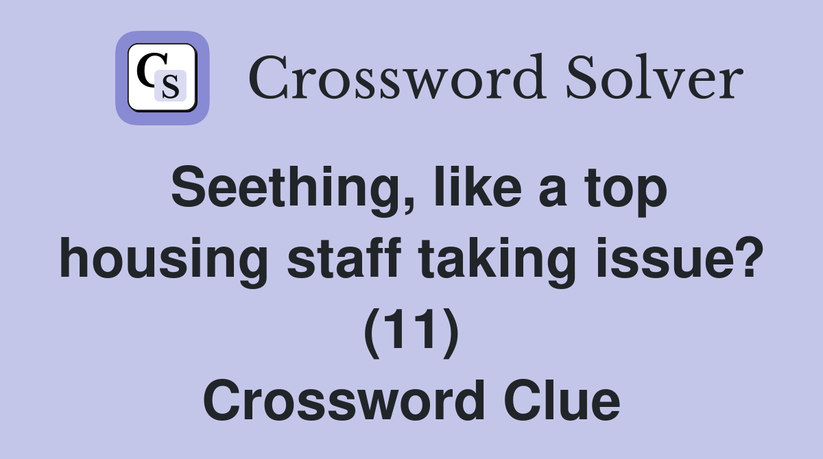 Seething like a top housing staff taking issue? (11) Crossword Clue
