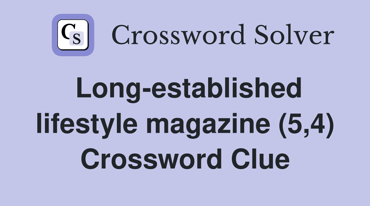 Long established lifestyle magazine (5 4) Crossword Clue Answers