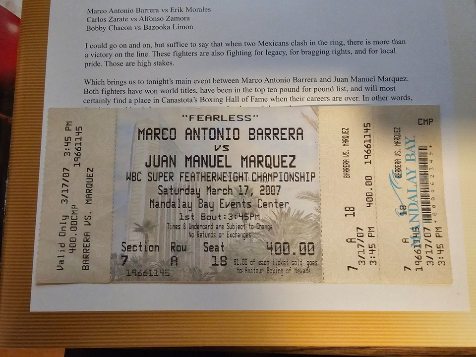 BARRERA VS MARQUEZ OFFICIAL FIGHT PROGRAM FULL FIGHT TICKET eBay