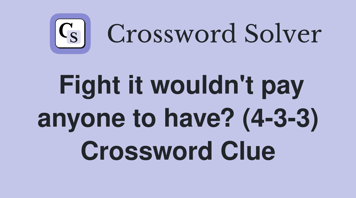 Fight it wouldn #39 t pay anyone to have? (4 3 3) Crossword Clue Answers
