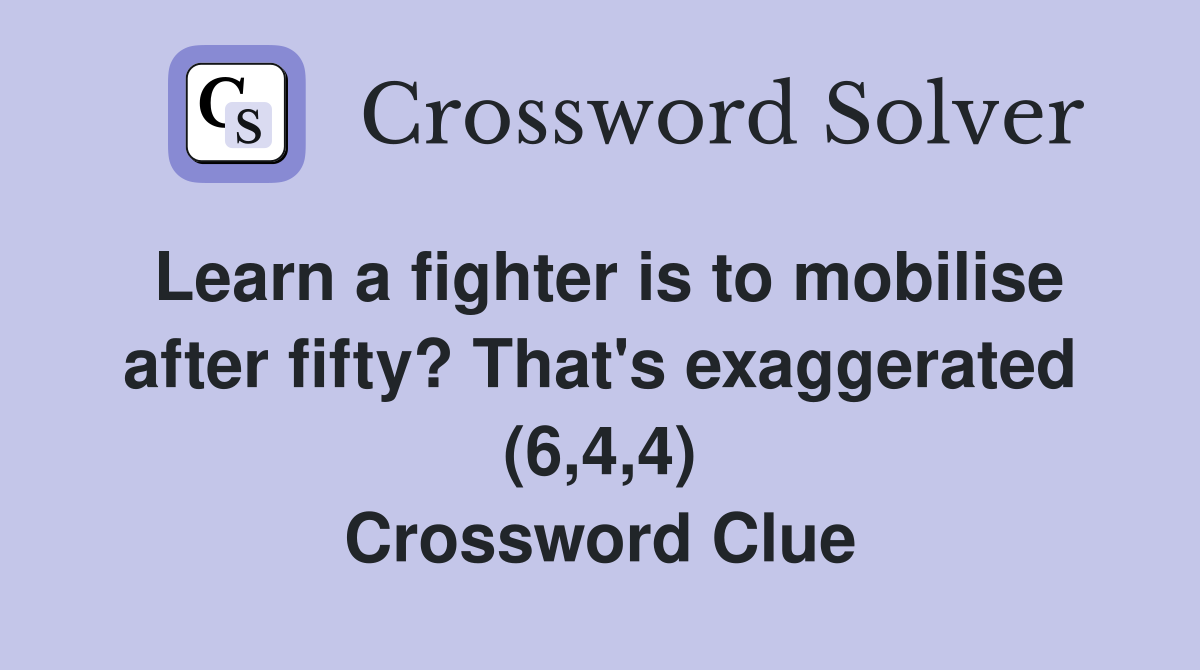 Learn a fighter is to mobilise after fifty? That s exaggerated (6 4 4