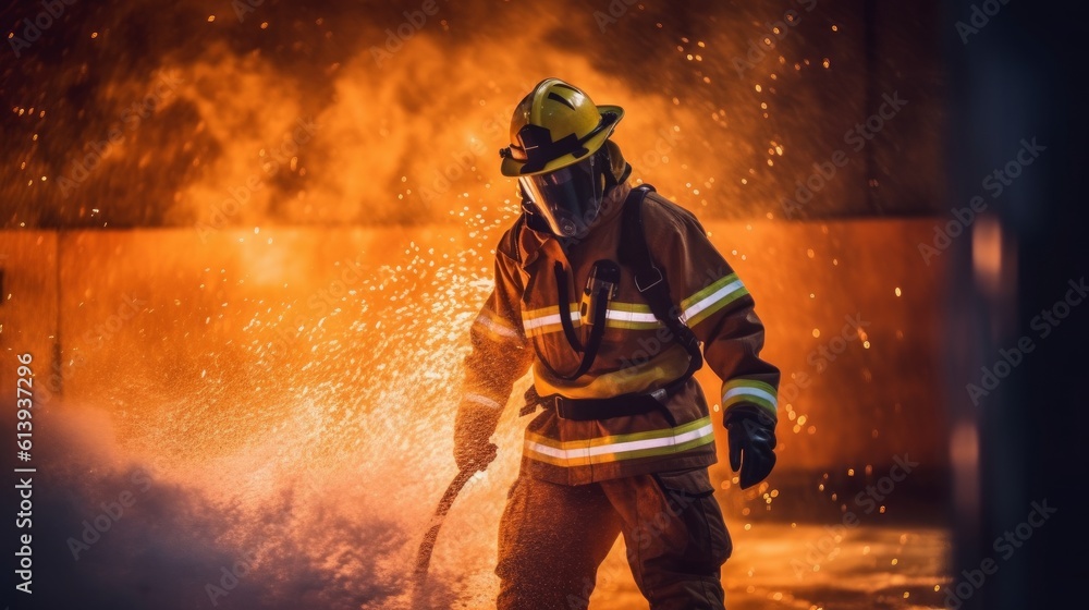 Professional Firefighter Extinguishing Large HighPriority Part of the