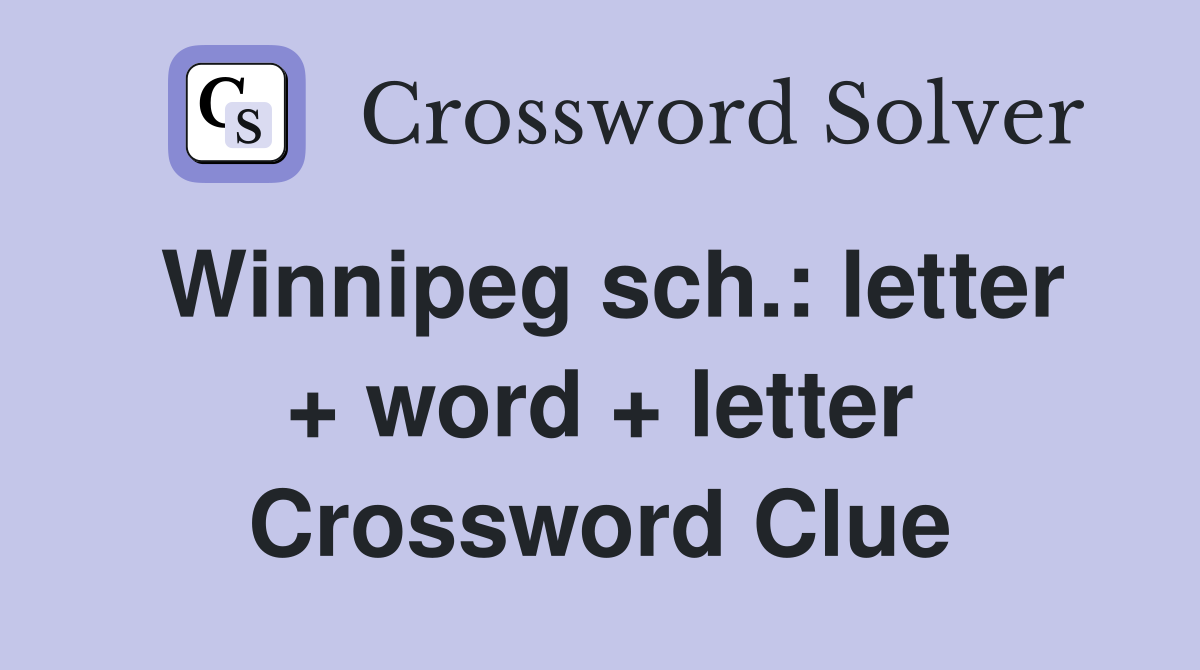 Winnipeg sch : letter word letter Crossword Clue Answers
