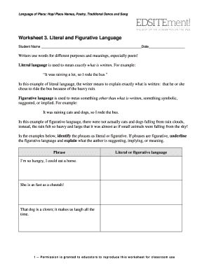 Fillable Online Worksheet 3 Literal and Figurative Language Fax Email