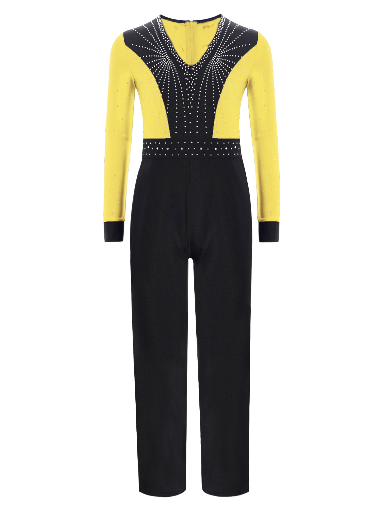 Doomiva Kids Boys Sparkle Figure Skating Jumpsuit Latin Dance Leotard