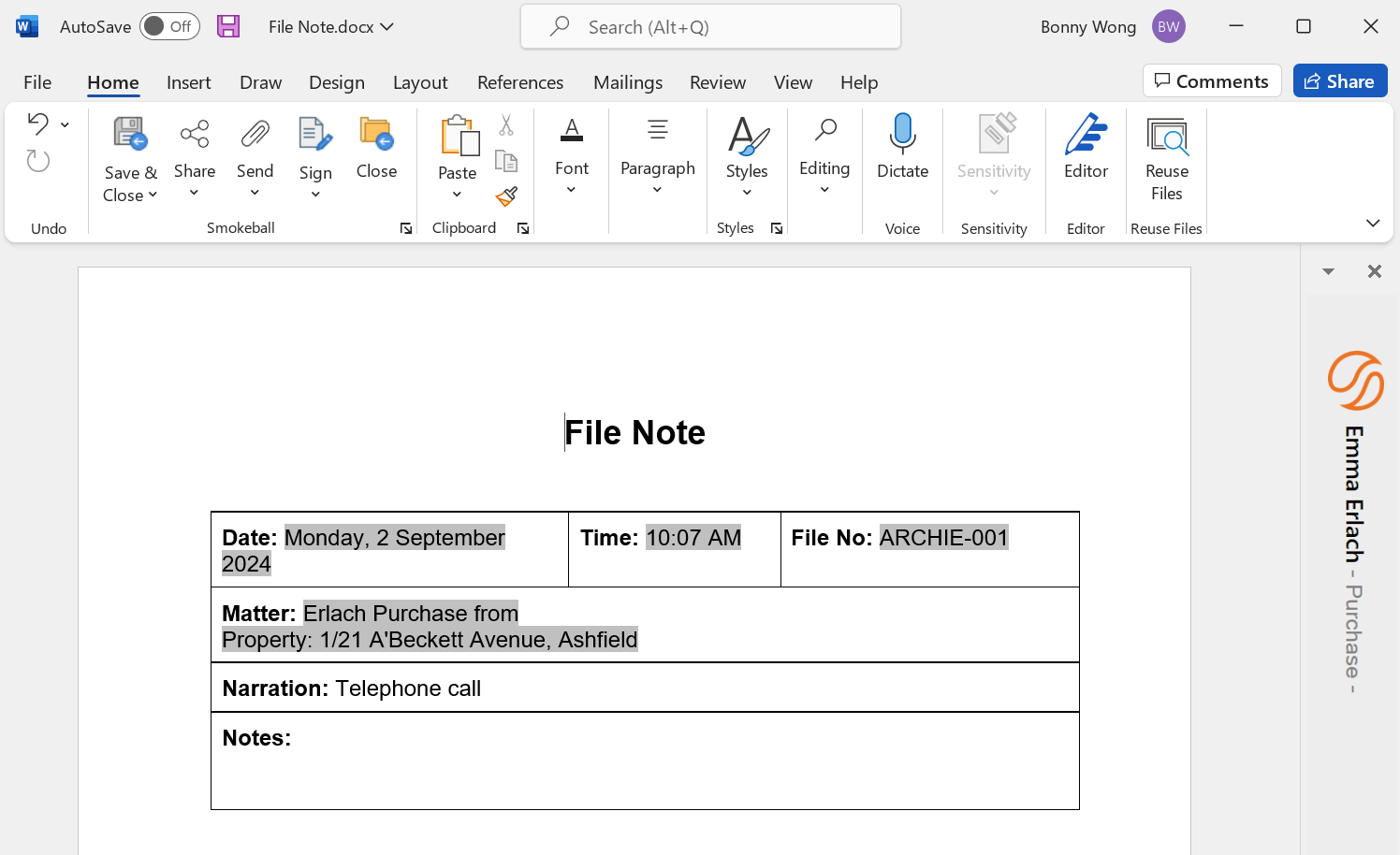 Create a File Note Smokeball Support Hub