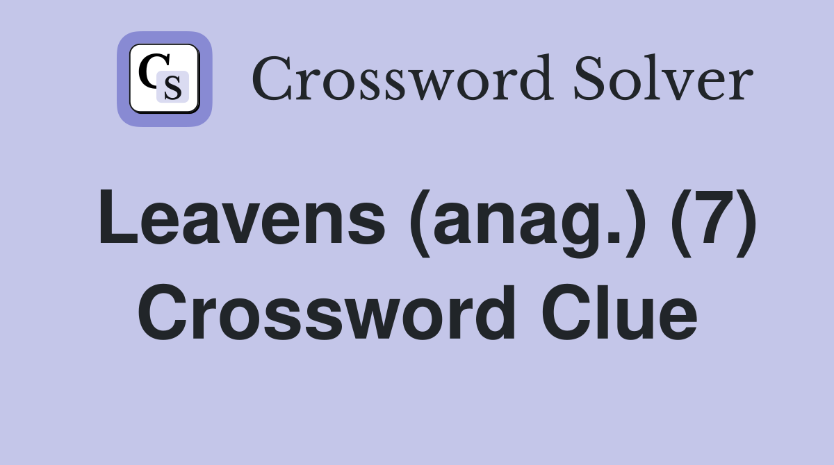 Leavens (anag ) (7) Crossword Clue Answers Crossword Solver