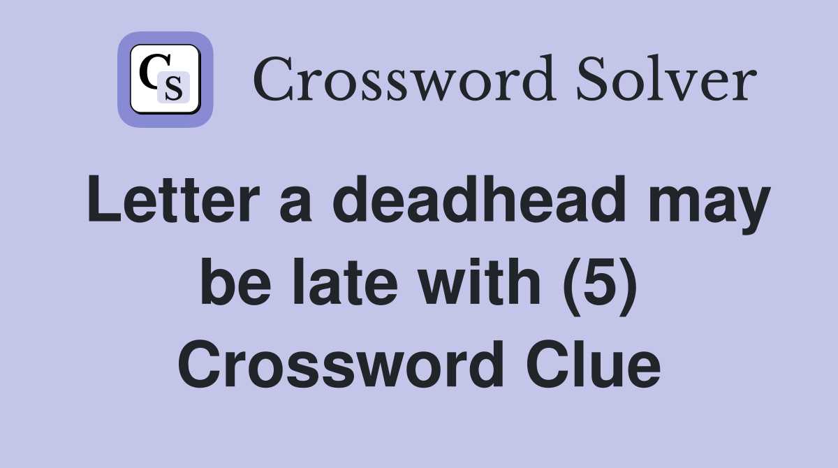 Letter a deadhead may be late with (5) Crossword Clue Answers