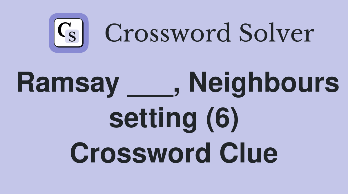 Ramsay Neighbours setting (6) Crossword Clue Answers Crossword