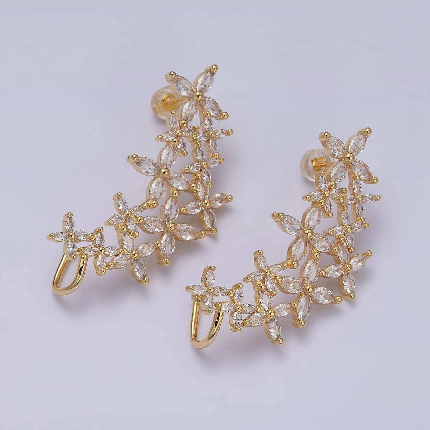 Wholesale 1 Piece Gold Filled CZ Marquise Flower Butterfly Ear Cuff for