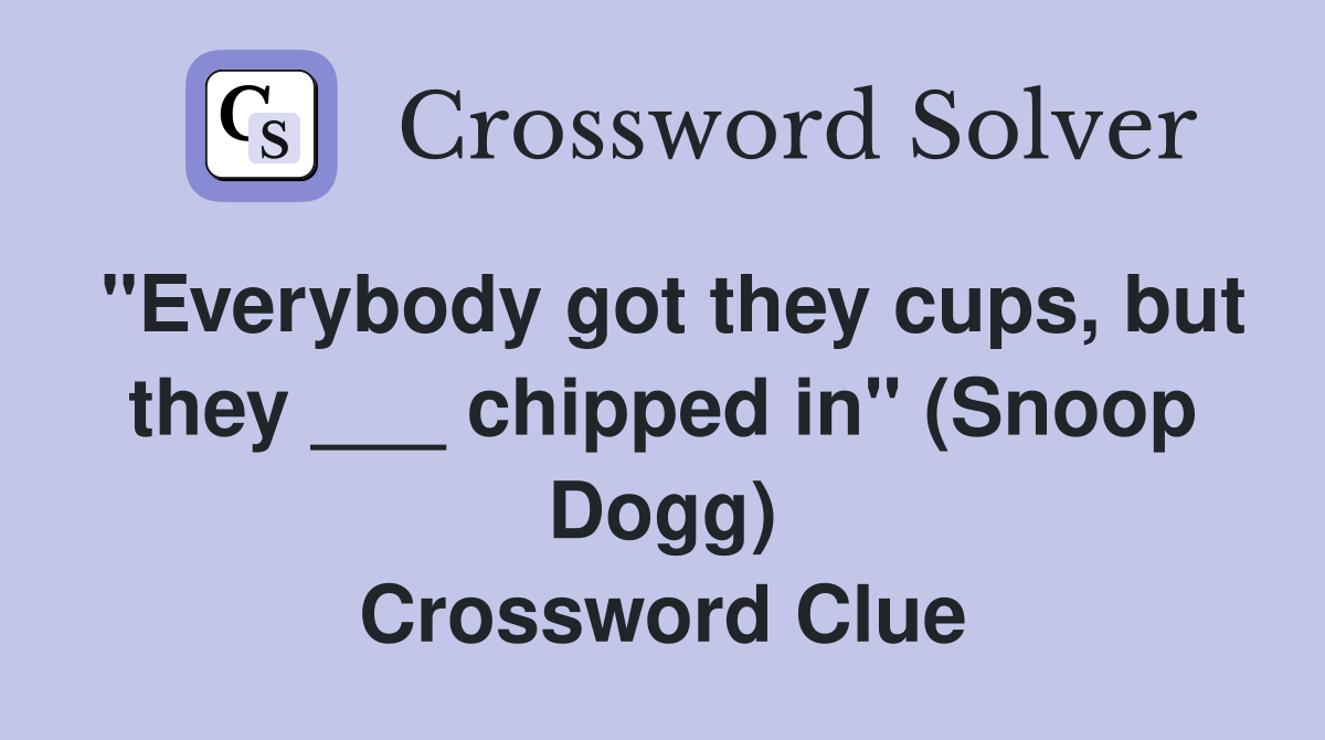 quot Everybody got they cups but they chipped in quot (Snoop Dogg