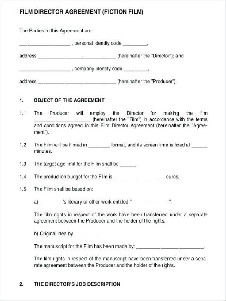 Film Director Agreement Template Form Fill Online Printable