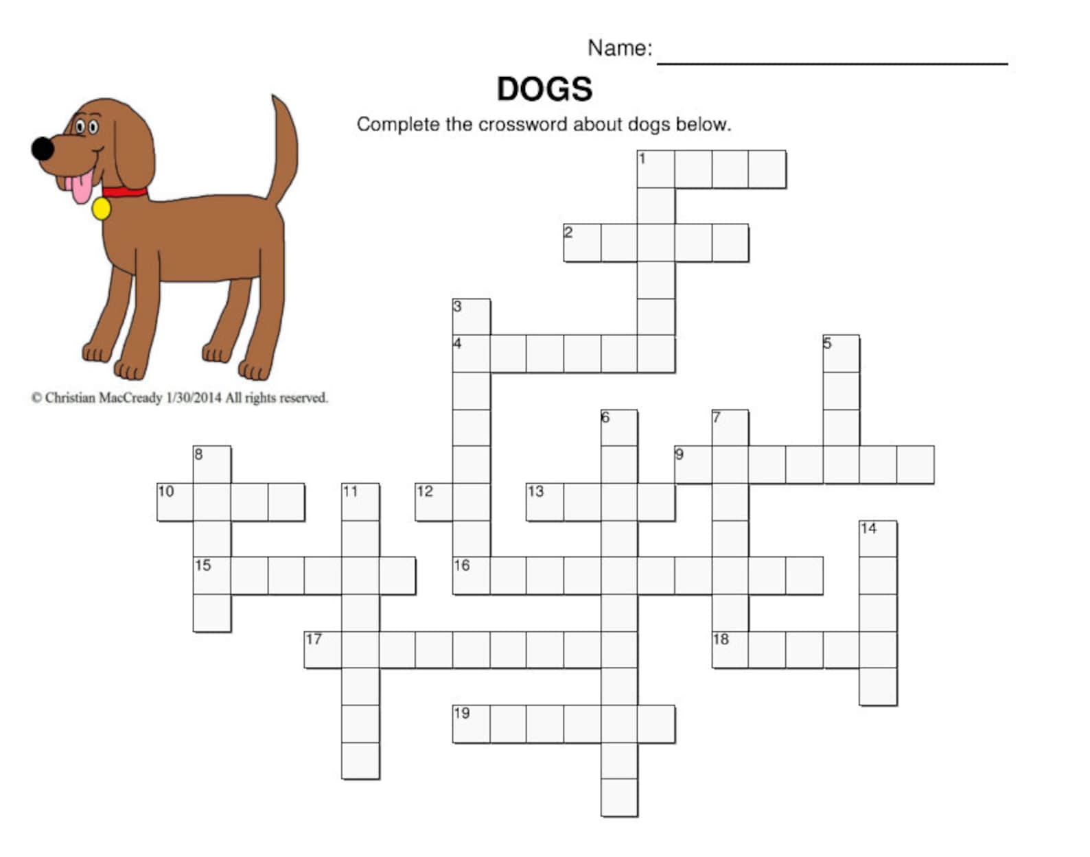 Printable Dog themed Crossword Puzzle Canine Brain Teaser W/answers
