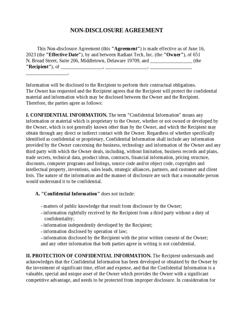 NDA Disclosure Agreement Template