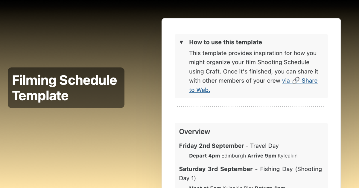 Filming Schedule Template