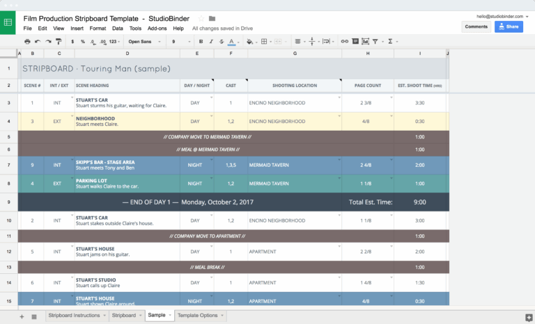 Shooting Schedule Template Google Sheets