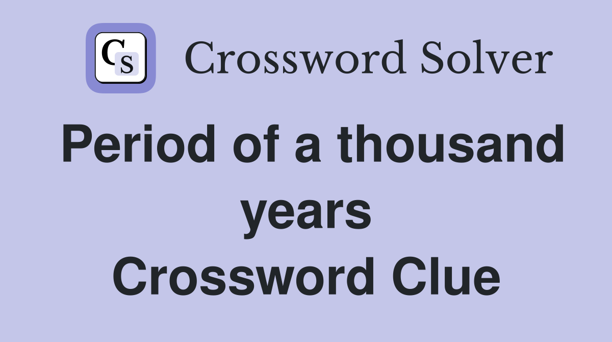 Period of a thousand years Crossword Clue Answers Crossword Solver