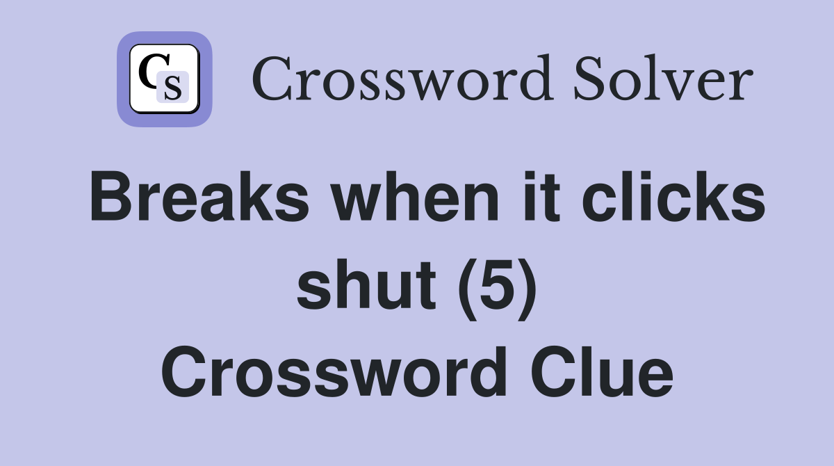 Breaks when it clicks shut (5) Crossword Clue Answers Crossword Solver