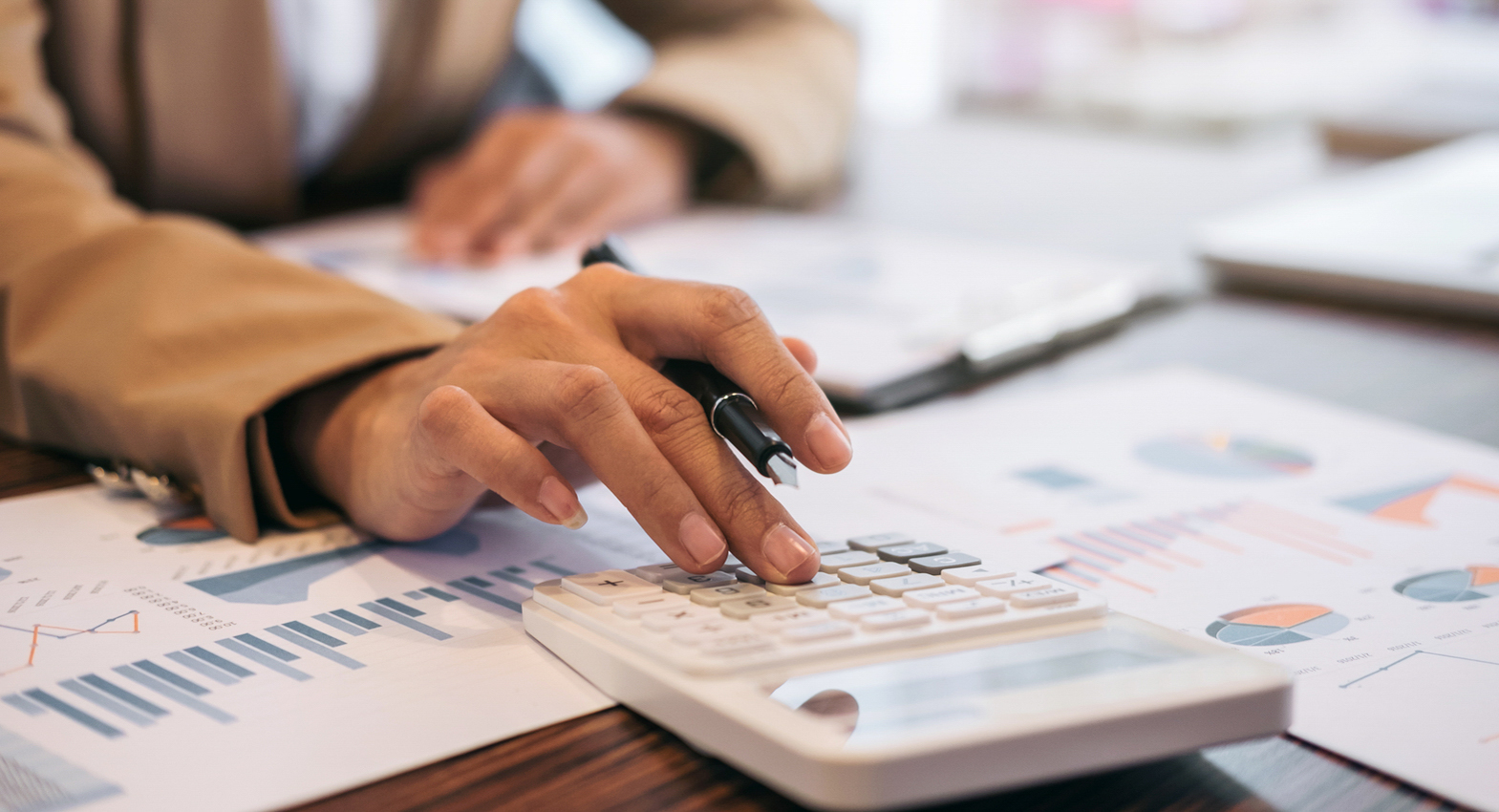 Premium Photo Corporate auditor calculating budget with calculator on