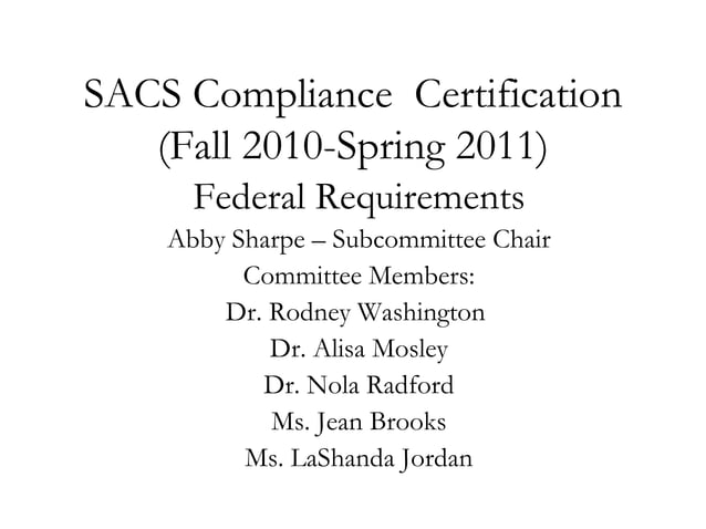 SACS Readiness Week: Compliance Certification Federal Standards PPT