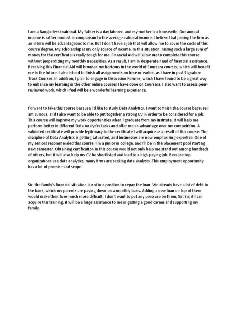 Coursera financial aid 1 Why are you applying for financial aid