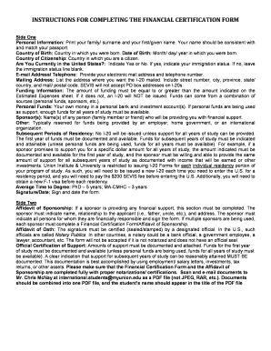 Fillable Online INTERNATIONAL STUDENT FINANCIAL CERTIFICATION FORM