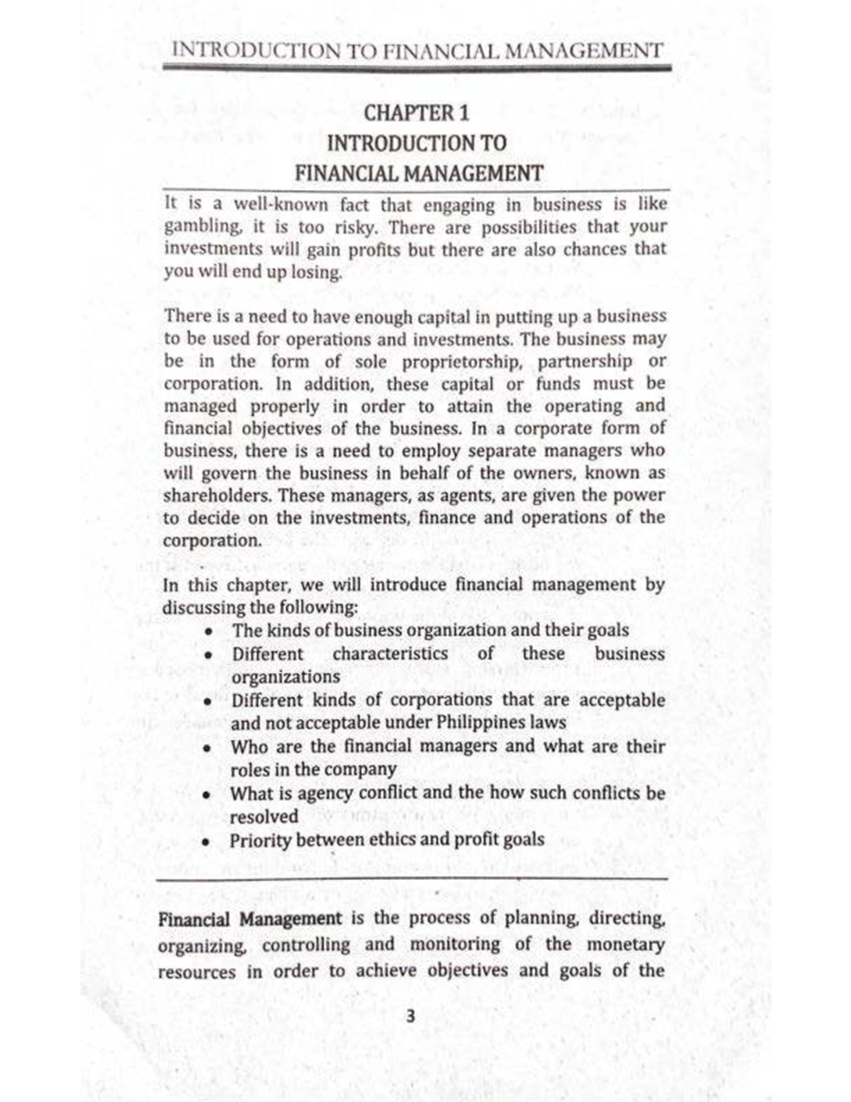 FINANCIAL MANAGEMENT CHAPTER 1: INTRODUCTION TO BUSINESS ORGANIZATIONS