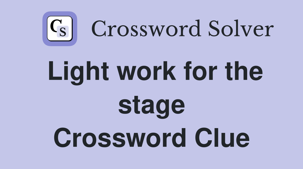 Light work for the stage Crossword Clue Answers Crossword Solver