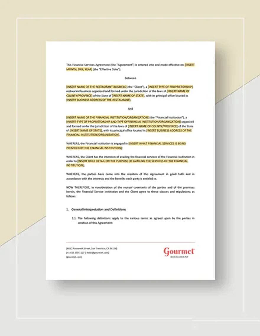 Restaurant Financial Services Agreement Template Google Docs Word