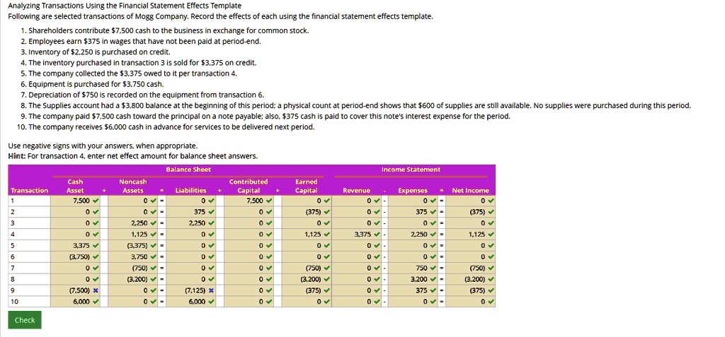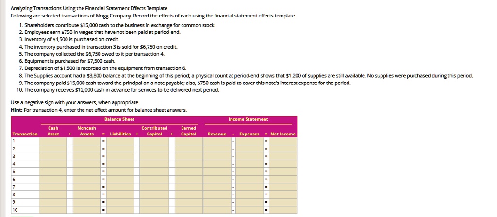 SOLVED: Texts: Analyzing Transactions Using the Financial Statement