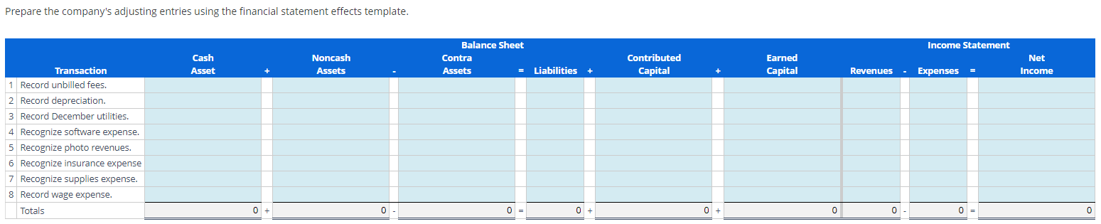 se the financial statement effects template to Chegg com