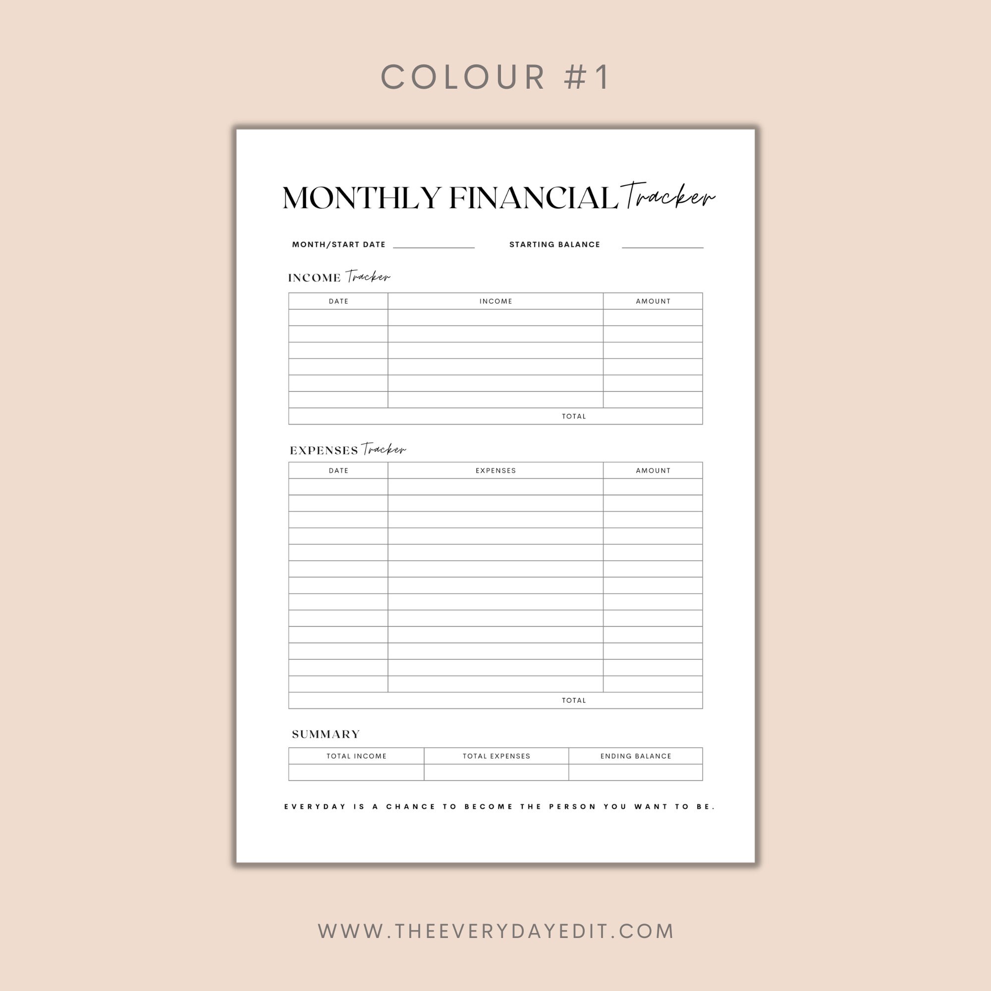 Monthly Financial Tracker Printable Monthly Expense Tracker Money