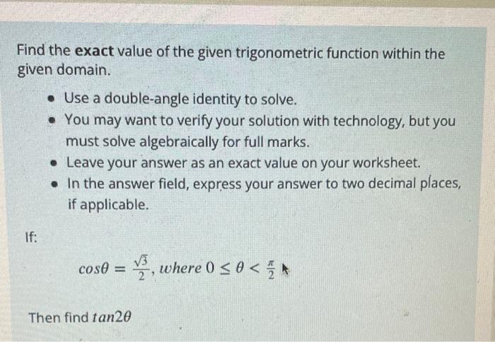 Find The Exact Value Of Each Trigonometric Function Worksheet prntbl