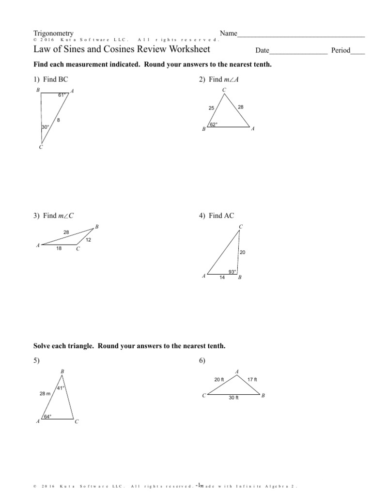 The Law of Cosines: Find Each Measurement Indicated Round Your