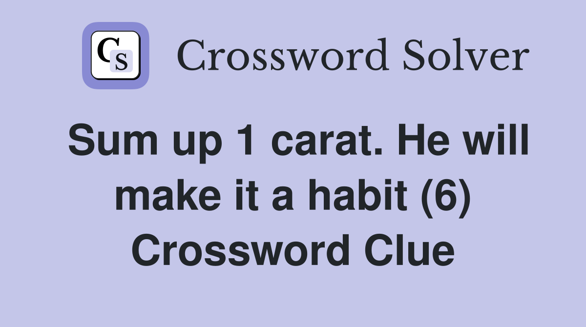 Sum up 1 carat He will make it a habit (6) Crossword Clue Answers