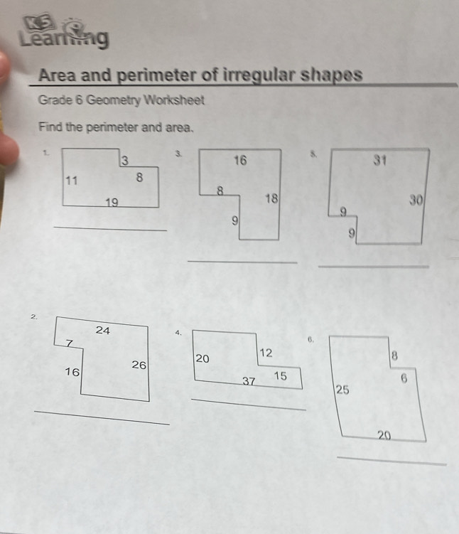 Solved: Learning Area and perimeter of irregular shapes Grade 6