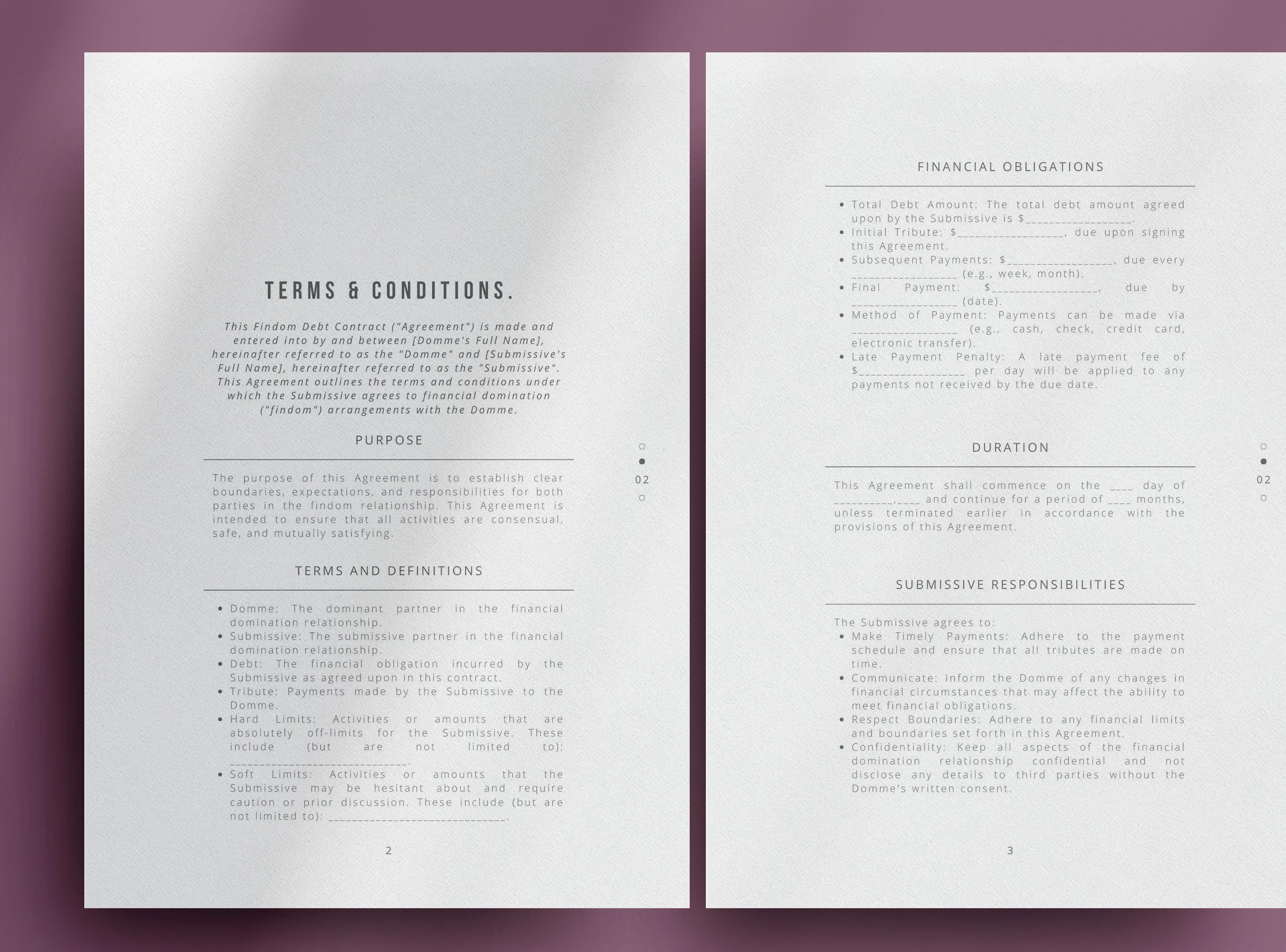Findom Debt Contract Template Findom Debt Agreement 2 Pages