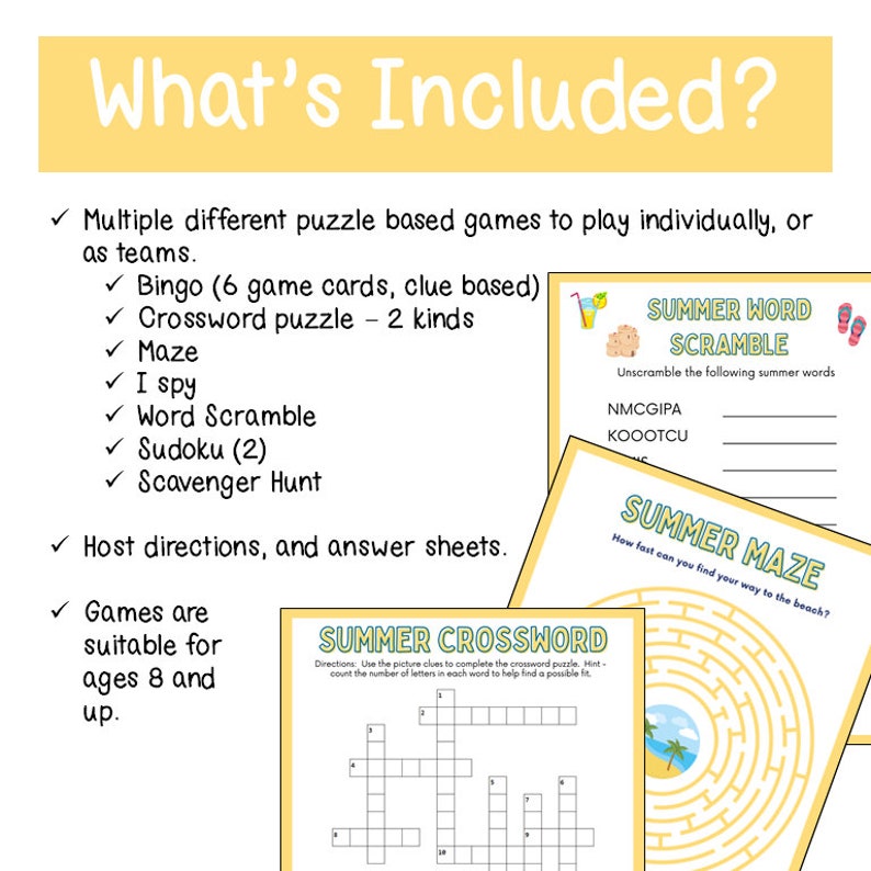Summer Printable Party Games Bundle Puzzle Party Game Kit Fun Party
