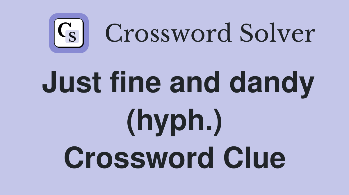 Just fine and dandy (hyph ) Crossword Clue Answers Crossword Solver