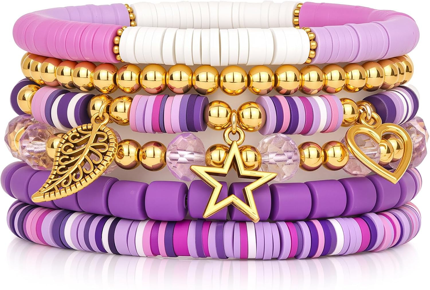 Heishi Clay Fine Beaded Bracelets for Women Purple Rainbow Green
