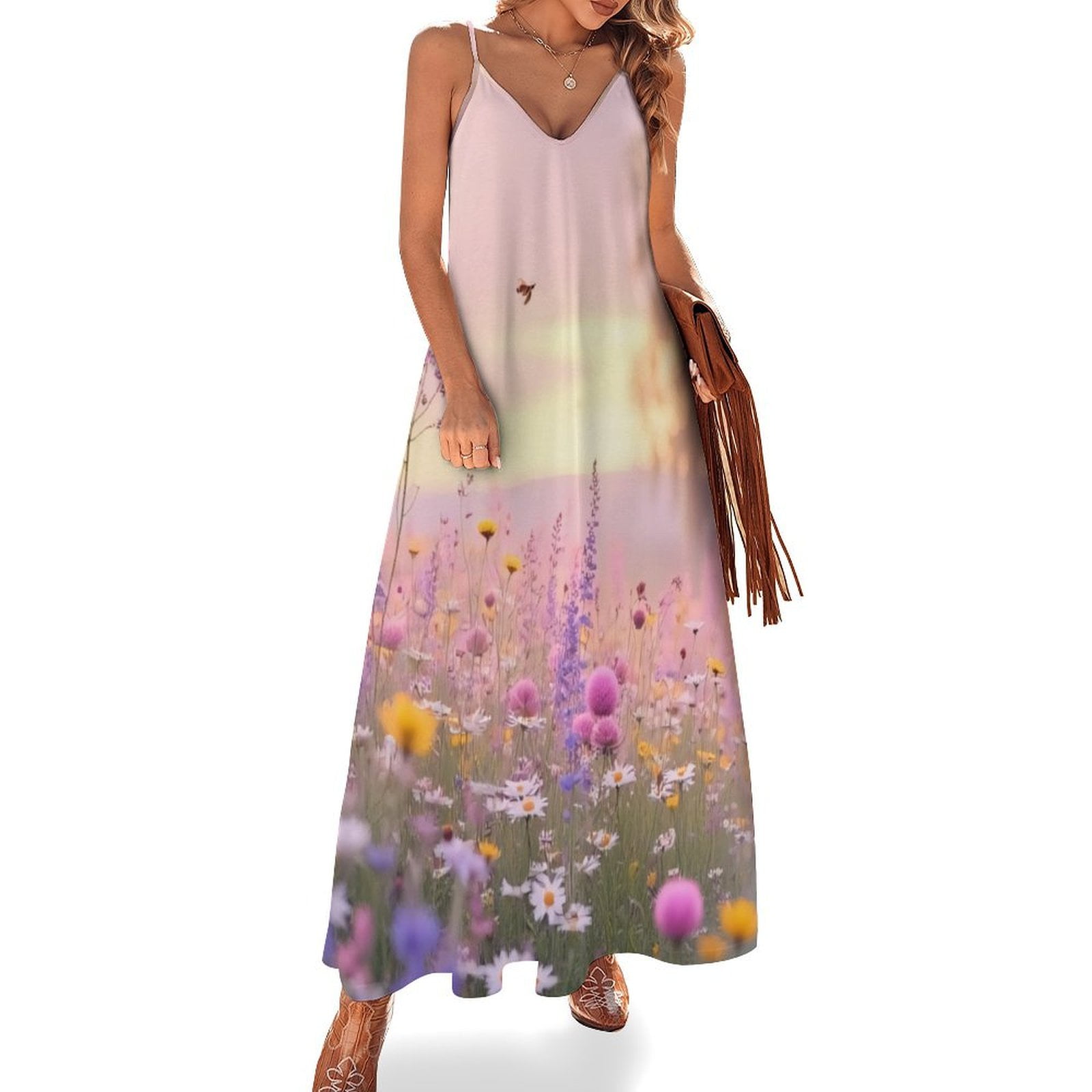 Colorful Wildflowers at Sunset Fine Art Sleeveless Dress Summer Dress