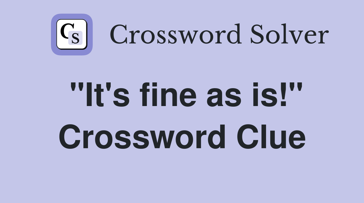 quot It #39 s fine as is quot Crossword Clue Answers Crossword Solver