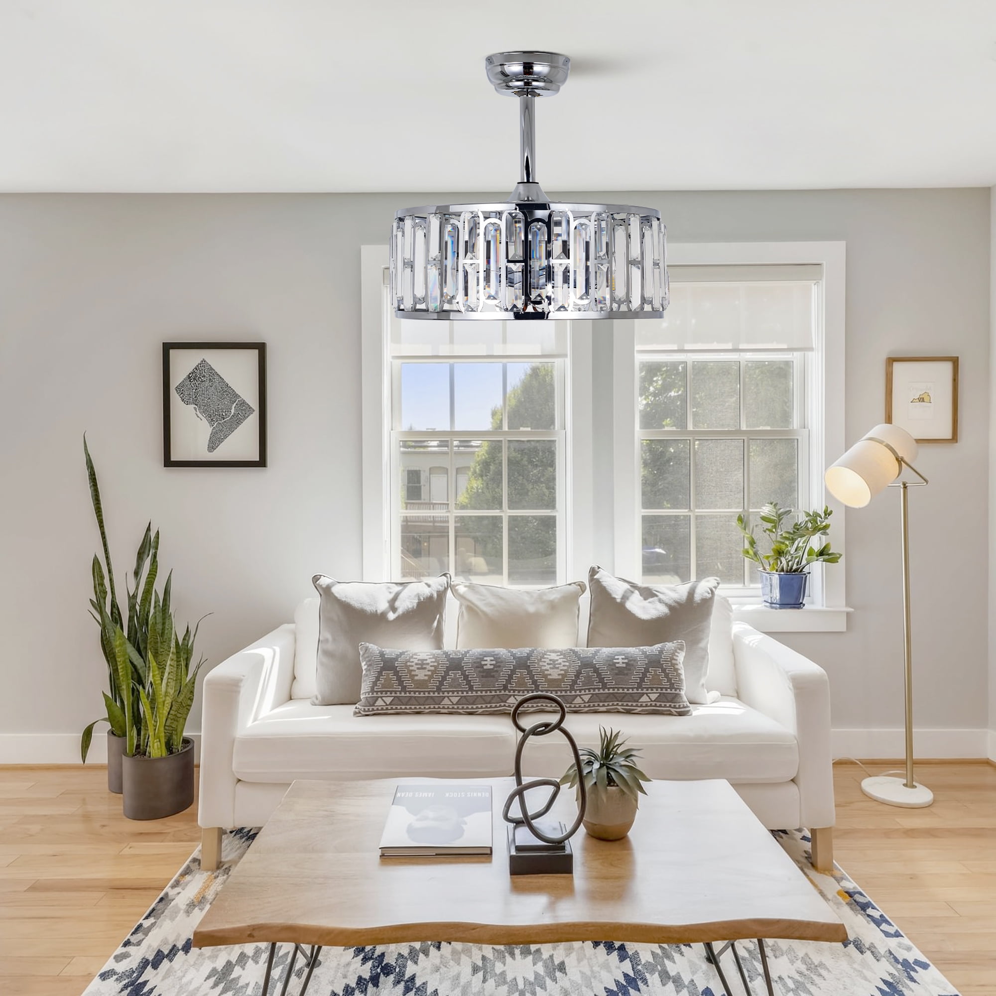 FINE MAKER 18 quot Round Chrome Industrial Caged Chandelier Fan 3 Speed 4