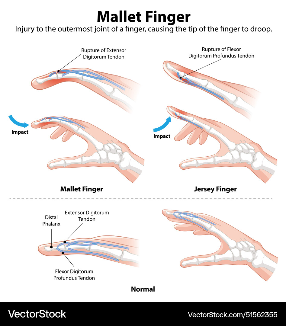 Finger tendon injuries and normal anatomy Vector Image